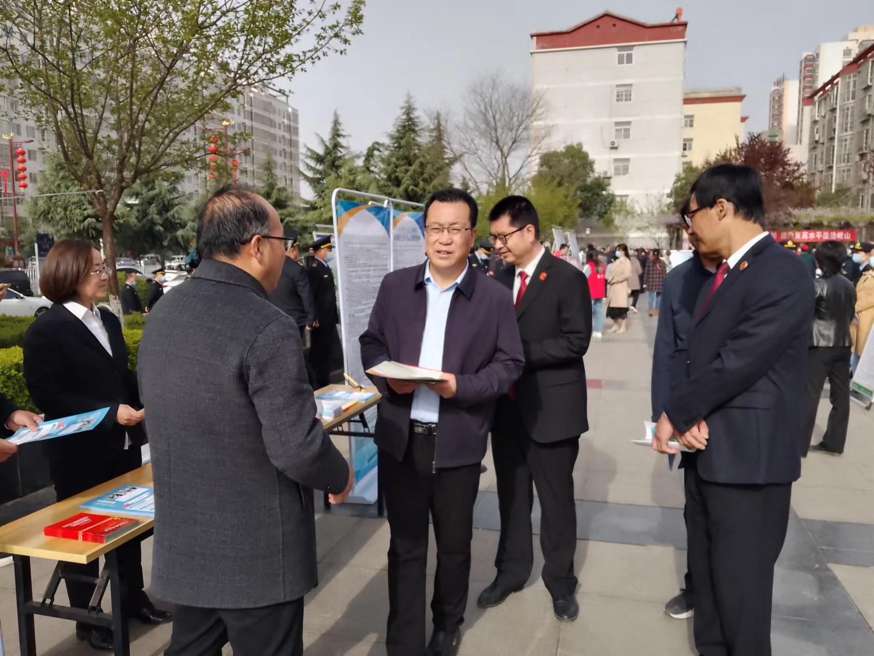 为深入学习宣传习近平法治思想,全面贯彻落实党的二十大精神,4月7日上午,岐山县行政审批服务局积极参加岐山县“八五”普法集中推进暨第二十九个法制宣传月启动仪式,在礼乐西广场组织开展以政务服务提升为主题的相关法律法规集中宣传活动。县委常委、政法委书记吕辉现场检查指导。