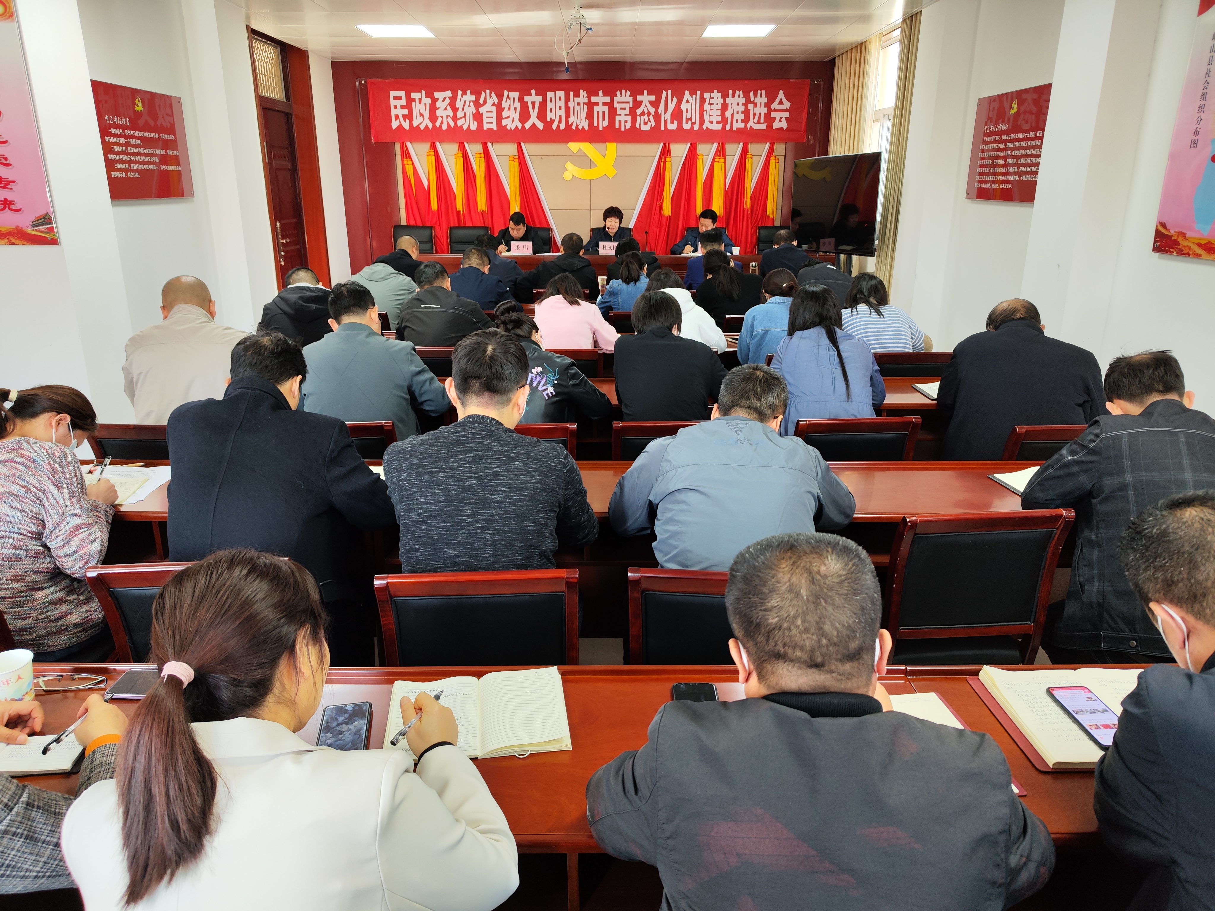 4月10日,县民政局召开民政系统省级文明城市常态化创建推进会,会议由副局长张伟主持,机关全体干部、系统各单位负责同志参加会议。