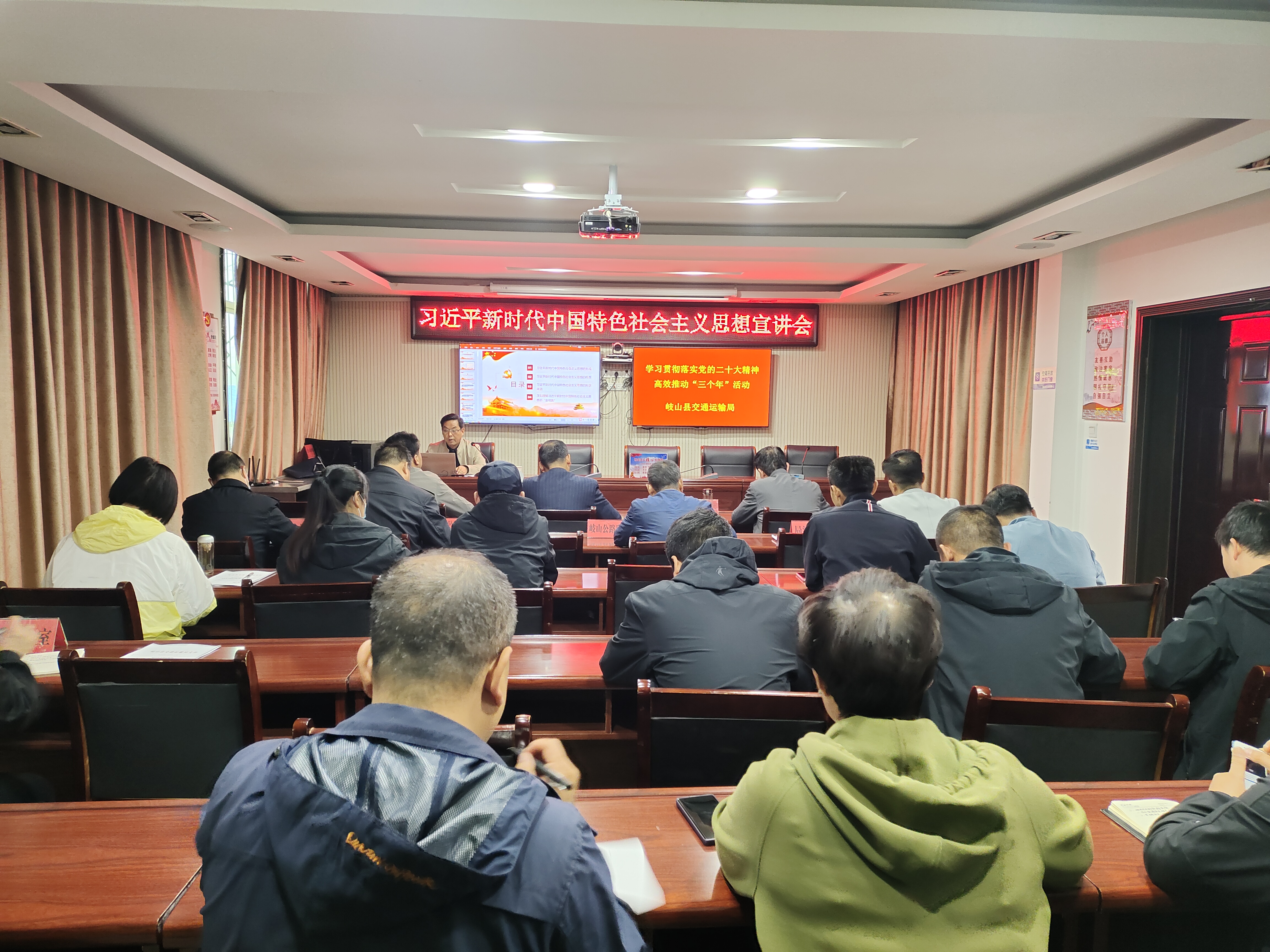 5月9日下午,县交通运输系统组织开展习近平新时代中国特色社会主义思想宣讲会。县委党校高级讲师梁浩彬同志主讲,局领导班子成员、系统各单位负责同志、局机关全体人员参加宣讲会。