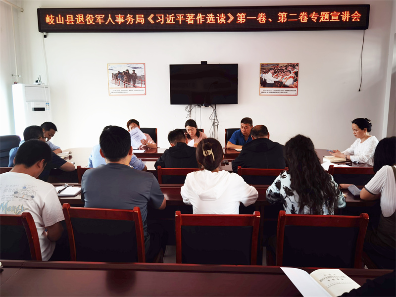 为深入开展学习贯彻习近平新时代中国特色社会主义思想主题教育,近期,岐山县退役军人事务局开展《习近平著作选读》宣讲活动,局机关全体党员干部参加。