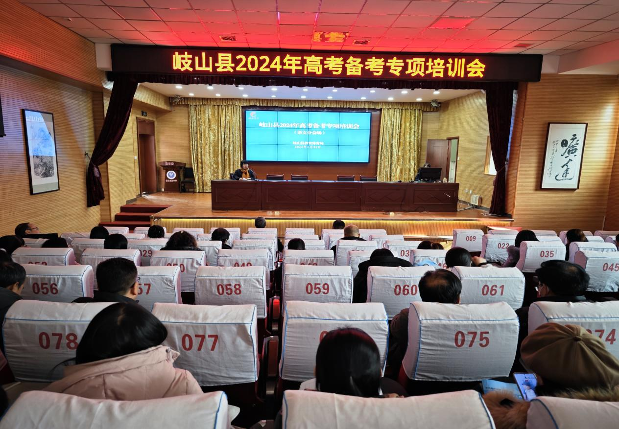 为全面提升高中教师备考能力,准确把握2024年高考命题方向,优化备考方案,提高备考效率,1月20日,岐山县教体局分学科举办高考备考专项培训。本次培训分语文、数学、英语、物理四门学科进行,全县285名高(职)中教师参加培训。