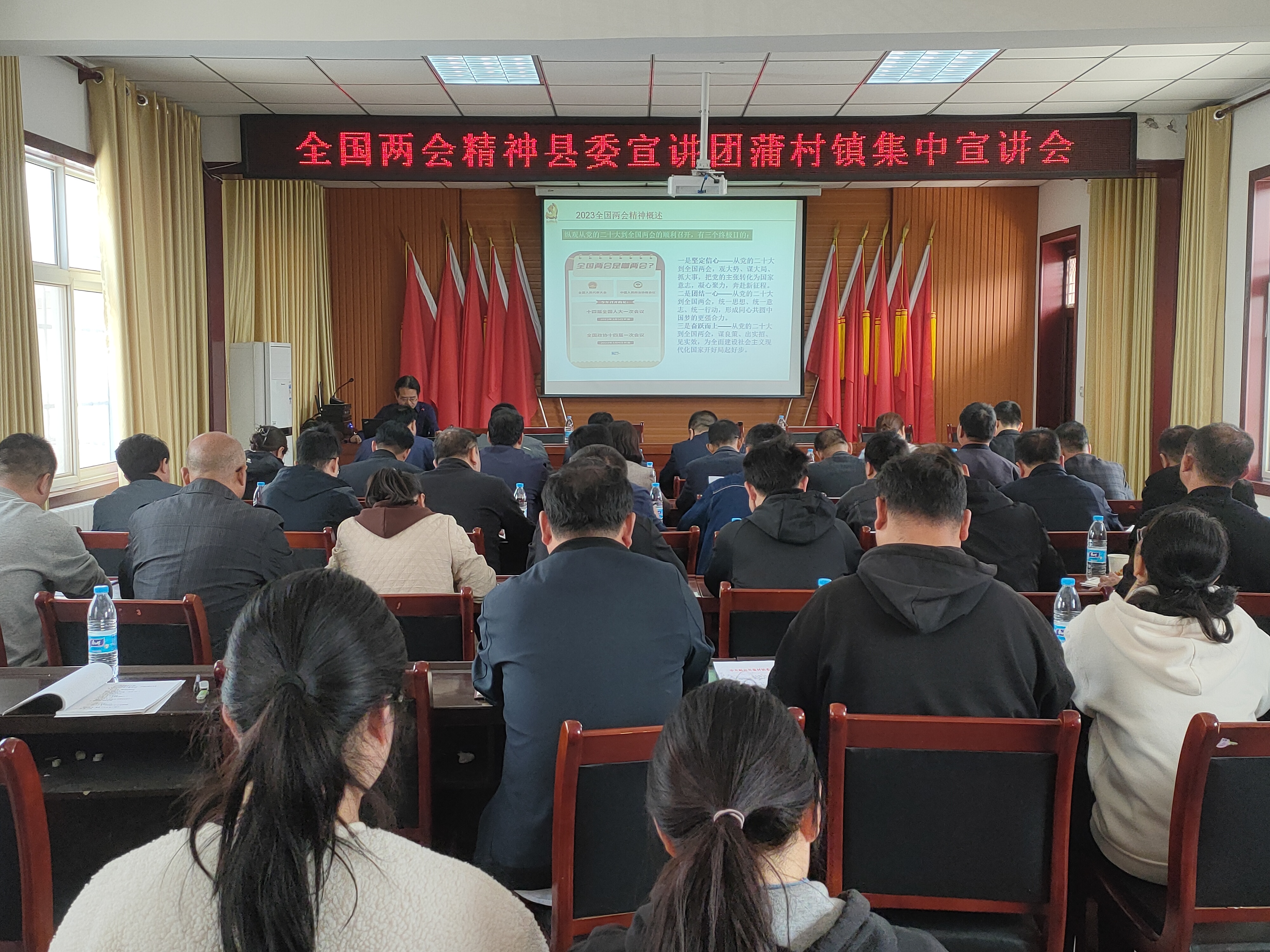 为切实推动学习贯彻全国两会精神热潮,把思想认识和智慧力量凝聚到全国两会确定的各项目标任务上来,4月12日下午,蒲村镇召开全国两会精神县委宣讲团集中宣讲会,会议由镇党委副书记李红科主持,镇领导班子成员,各党(总)支书记,驻村第一书记、工作队员,驻镇单位负责人,机关全体干部共50余人参加了宣讲会。